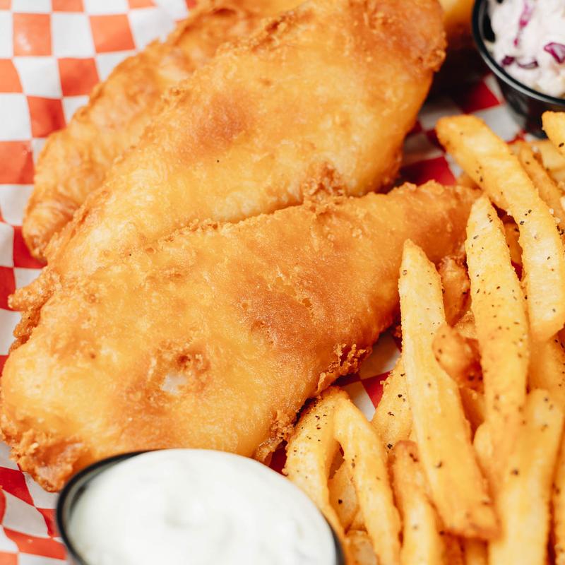 Large filet cooked your way (beer battered, grilled, or blackened) served with fries, slaw, and house-made tartar sauce wedge of lemon.