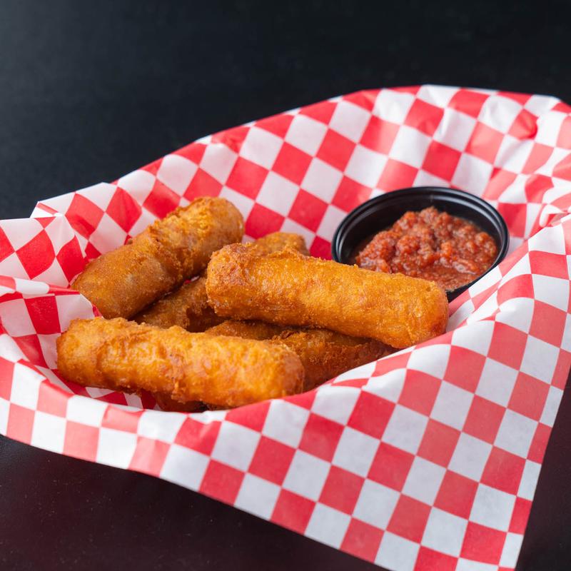 Warm and gooey mozzarella sticks served with marinara sauce.